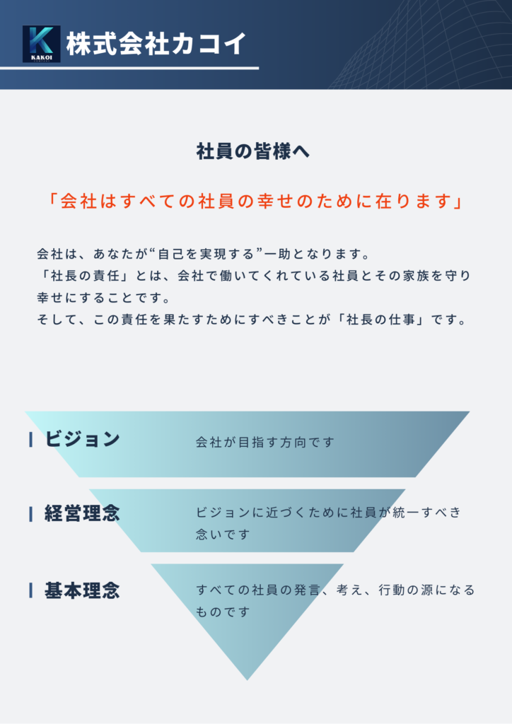 弊社は、より良い社会を構成する一員として事業に取り組み、縁あって働いてくださる全ての社員のために在ります。